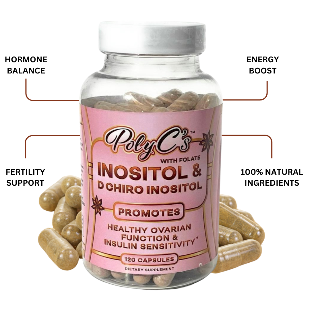 Multiple studies have proven that the combination of Inositol & D Chiro at a 40:1 ratio as most effective for PCOS. PolyC's new formula now has FOLATE, a B vitamin that has shown to help support ovulation and overall reproductive health in women with PCOS